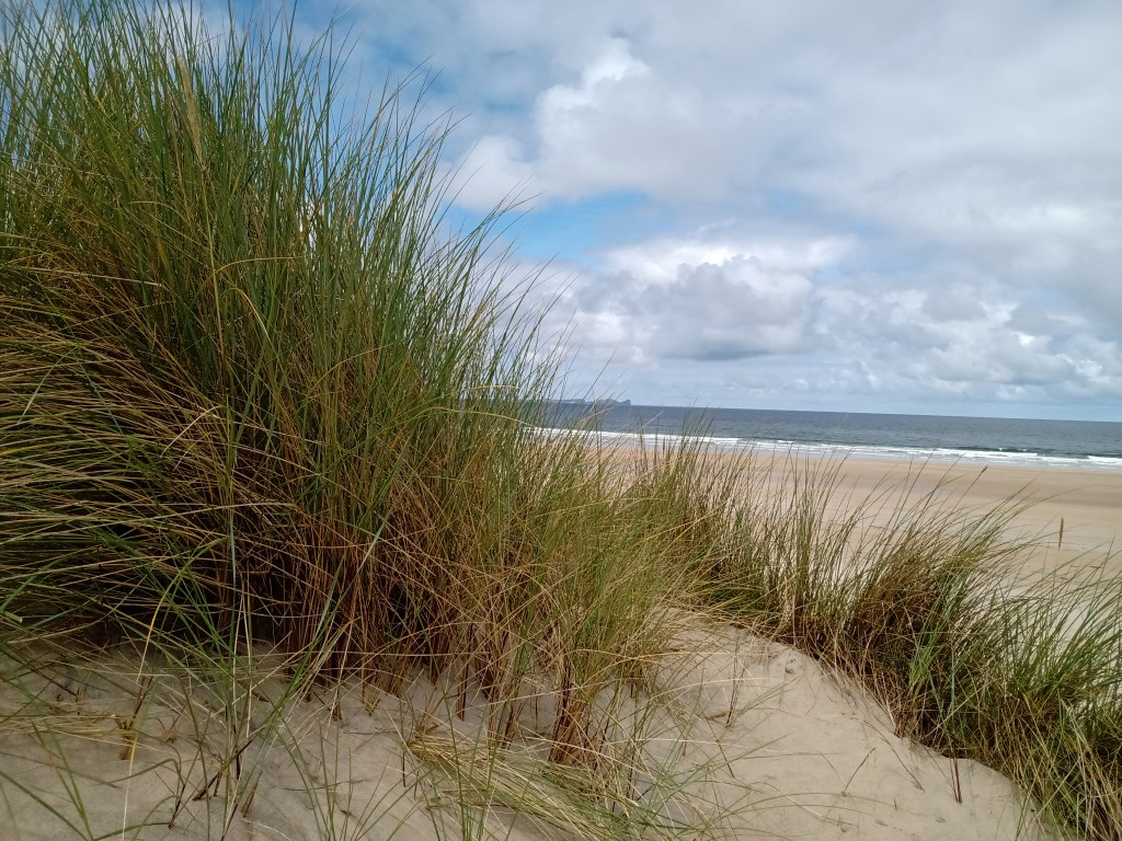 We have escaped across the border to a rented newly built house. The smell of turf fires greeted us and a long walk across a deserted golden beach reminded us of Donegal’s natural beauty.
